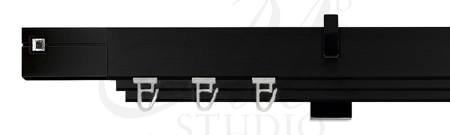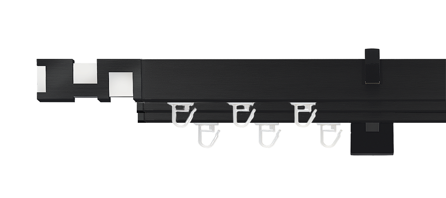 Karnisz aluminowy z profilem Square Line czarny mat z kreatywną końcówką Interno